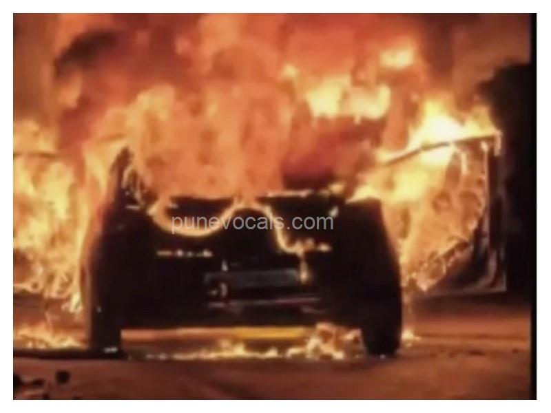 पुणे-मुंबई हाइवे पर ऑडी कार जलकर खाक, तीन लोग सुरक्षित