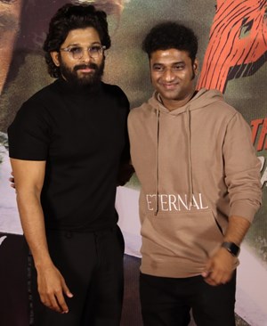 Allu Arjun and Rashmika Mandanna at Press Conference Of Film Push...